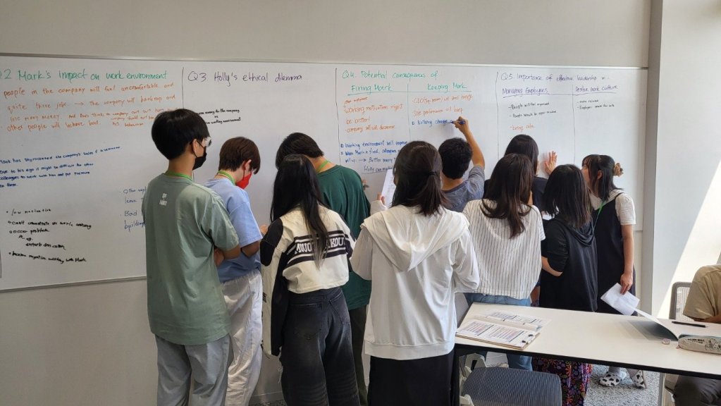 In the workshop "Tricky Translations", led by Y. Goh and T. Hirai, students explore how tricky it can be to simply communicate and the different avenues of utilizing language in their everyday life.