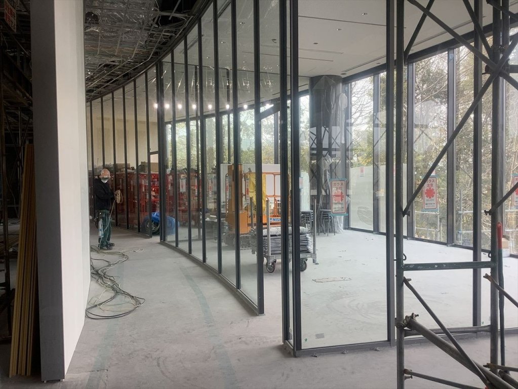 On the group floor, light fittings have been installed in the cafeteria and the walls are currently being painted. The glass partitions between the Administration office and the study rooms located on the same floor are now in place and the rooms are now distinctly delineated.