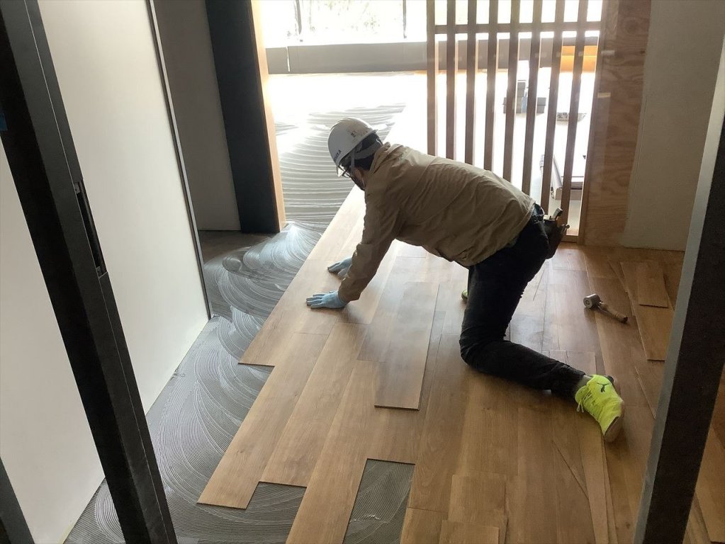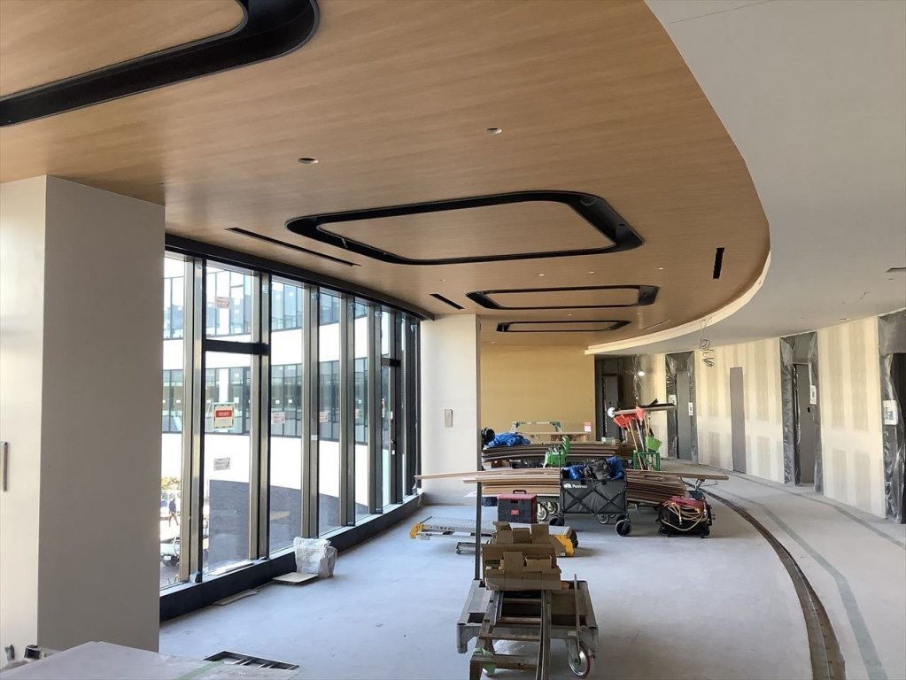 The first floor of the dormitory (men's area) has been completed and the floor finishing on the third floor (women's area) is underway. In addition, the staircase's foundation from the courtyard to the stage has been completed and preparations for tiling and turfing are underway.