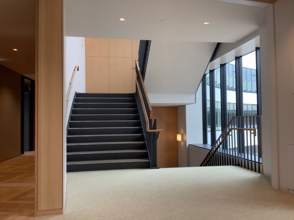 Floor carpet work at the lounge of the ground floor has been completed. The internal staircase, with the completion its floor finish and the handrail finish, has also been finalized.
