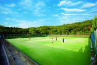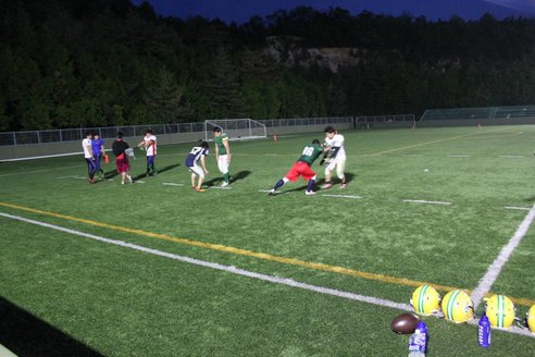 NUCB rugby field uses SRI hybrid artificial grass. In addition, LED lights are installed making practice possible in evenings.
