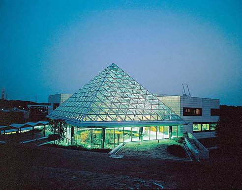 Once inside the huge pyramid-shaped Active Learning Center, you will see the entrance to the building. This entrance is used for various events such as the opening ceremony of the school festival (Sagamine Festival).