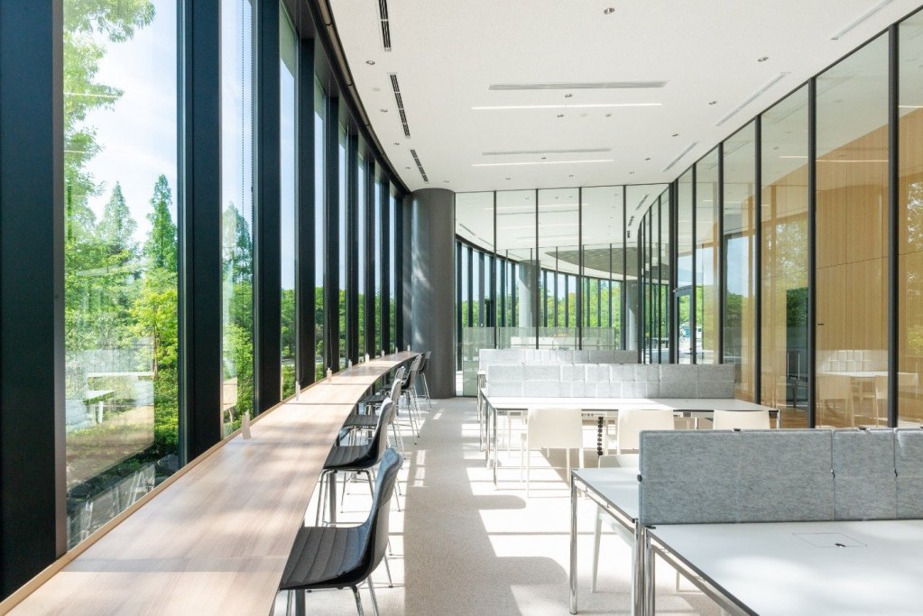 The dining hall has a terrace in front of it, where you can relax and enjoy a meal on sunny days. The terrace is designed as a place to relax and enjoy the beauty of Japan's four seasons, with plants blooming according to the seasons.