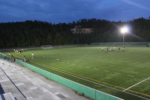 ラグビー場・サッカー場 ハイブリッドのロングパイル人工芝(75mm)を採用したグラウンドとなり、プレー性能や安全性が飛躍的に向上しました。また、LED照明も設置され、日が短い冬のシーズンも十分な練習ができるようになっています。ラグビー部のほか、アメリカンフットボール部やサッカー部、ラクロス部やフィールドホッケー部の活動場所になっています。