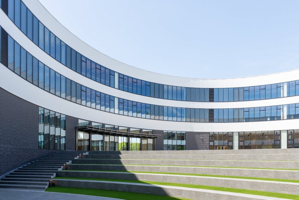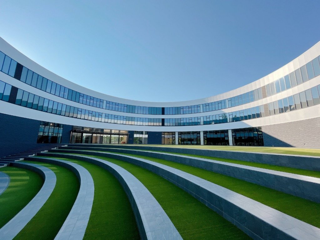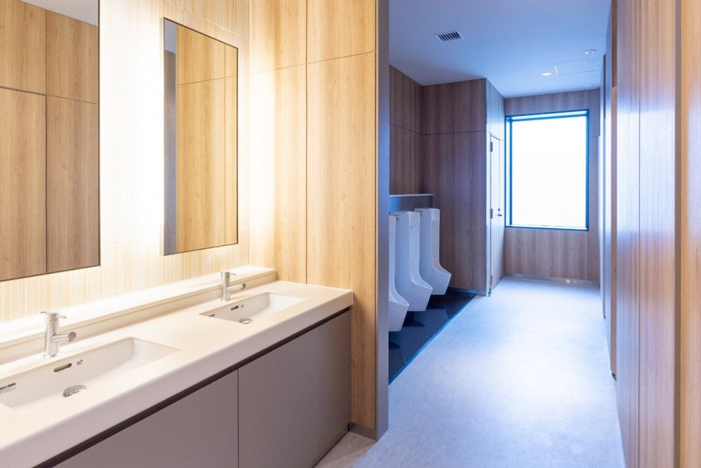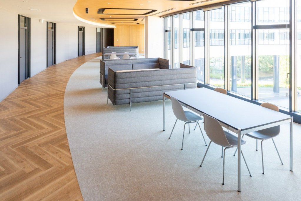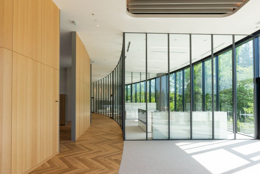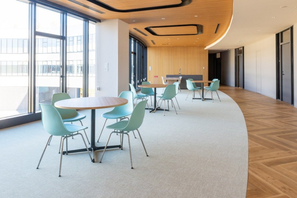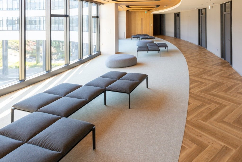 カフェテリアの前にはテラスが広がり、お天気のいい日はここで食事をとったり寛ぐこともできるスペースです。四季にあわせて植物も花を咲かせ、日本の四季の美しさを感じることができる憩いの場となるよう設計されています。