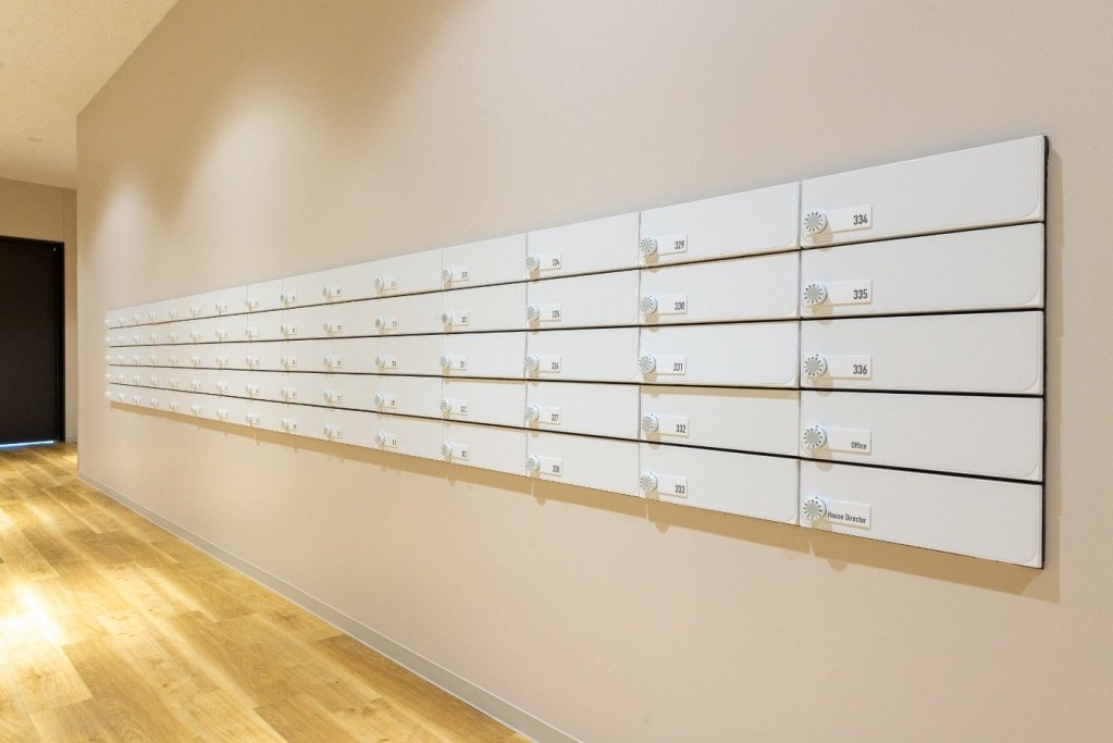 宅配ボックス、郵便ボックス、自動販売機、トイレ