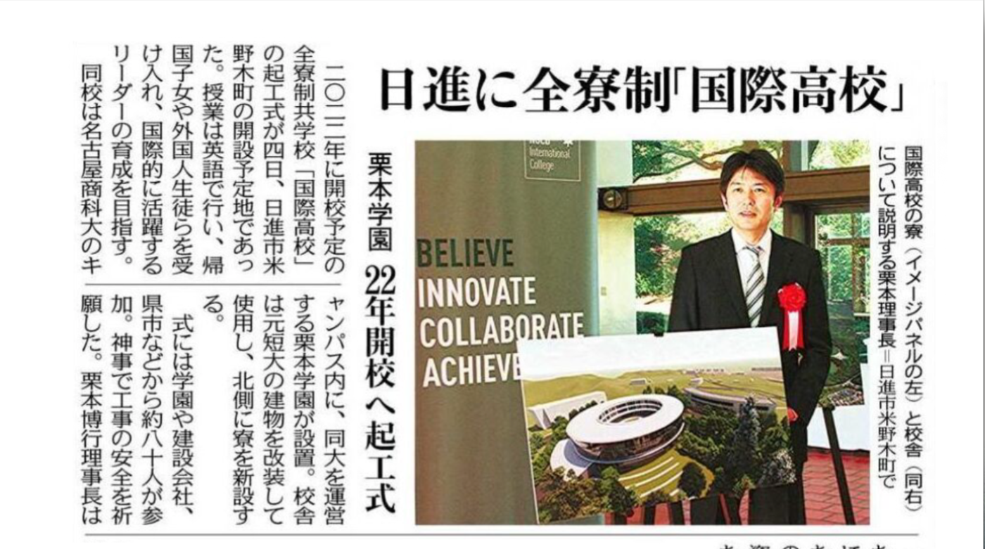 2020年12月5日(土)の中日新聞にも 日進に全寮制「国際高校」と取り上げられ、半世紀前からの構想や寮を含め学校の紹介をしていただいています。