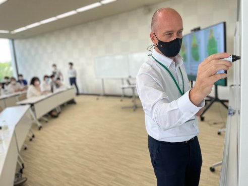 当日は事務局長による挨拶で幕を開け、スタッフによる学校紹介と、デニス・ケリー校長による歓迎のスピーチが続きました。その後、Q&Aセッションと個別相談会が行われました。プログラムや寮生活の詳細や特徴について個別にじっくりスタッフがお答えし、疑問や質問を解消いただきました。次に、ケースメソッドの体験授業が行われました。今回は、地理担当のDarron Gray先生が、"Montserrat, The Sleeping Dragon 1996 "と題して、カリブ山脈を舞台にしたケースを紹介しました。このケースでは、火山の大爆発を想定して、モンセラット島の最適な避難方法を参加者に問いかけました。体験授業の後は、スタッフの案内でスポーツ施設や学生寮・校舎の建設現場などのキャンパスツアーが行われました。また、参加者の皆様には、本学の制服のサンプルを初めてご覧いただきました。