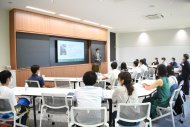続いて、完成した校舎と国際寮の内部を初めて見学していただきました。美しい校舎を目の当たりにし、その風通しの良さやリラックスした雰囲気を体感していただきました。国際寮は、365度ガラス張りで、日進・長久手キャンパスの美しい花々が咲き乱れる風景を一望することができました。