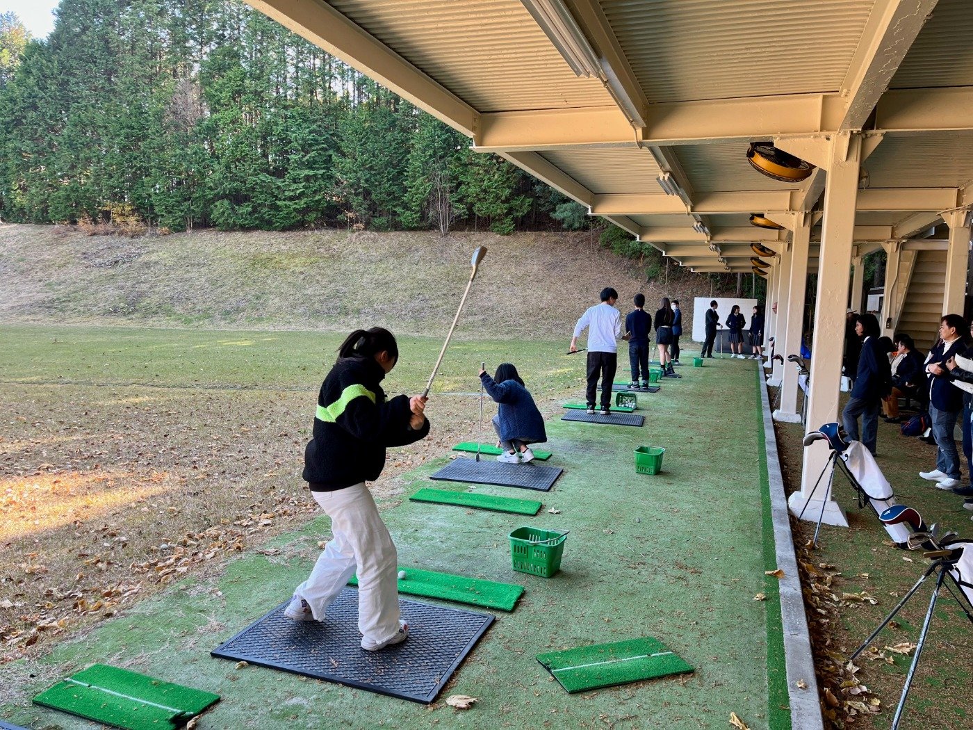 生徒たちと一緒に楽しいランチを楽しんだ後、参加者はエンゲージプログラムを体験し、ゴルフに挑戦しました。初めてゴルフをする方も多かったのですが、先生や国際高等学校の生徒の指導を受けて楽しく上達することができました。
