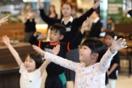 音楽の授業では、音楽の構成要素とそれらが生み出す雰囲気(曲想)の関連性について学んだ後、ディズニーランドを題材としたケースメソッドの授業で議論を交わしました。参加者は互いの意見を聞き合う中で、パーク内のさまざまなエリアは異なるテーマを演出しており、音楽が雰囲気作りにおける重要な役割を果たしていることを学びました。その後、自分たちのオリジナルテーマパークの構想を練り、クラス全体で4つのエリアを構成しました。各参加者は、自分が所属するエリアの雰囲気に合ったコンセプトに基づくお店を提案し、内装や外装、取り扱う商品やコスチューム等を構想するとともに自分のお店用のメロディー作りに取り組みました。