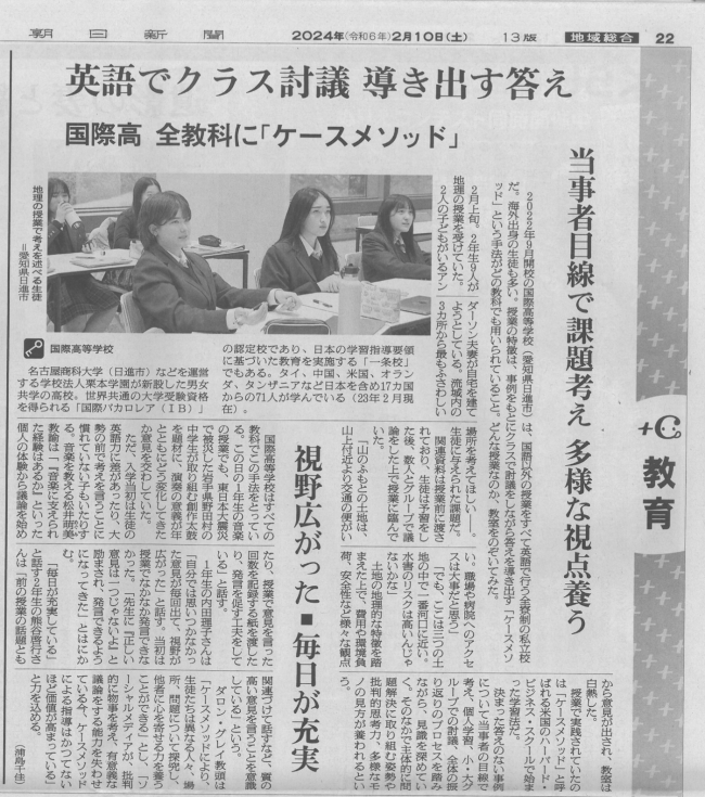 2022年9月に愛知県日進市に開校した国際高等学校は、世界に通用するリーダー人材の育成を目指し、国内外から集う多様な経験を持つ生徒が共に学ぶ環境を提供しています。愛知県より一条校としての認可を受け、日本語(国語)を除くすべての授業を英語で実施し(文部科学省教育特例校認可)、開校からわずか4ヶ月後の2022年12月12日付でIB World Schoolとして認定され、東海地区初、全国でも数少ない全寮制の国際教育機関となりました。