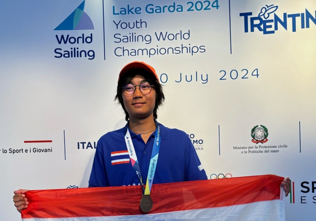 国際高等学校(愛知県日進市)1年ウェカ・バヌバンは、7月12〜19日にかけてイタリア・リーヴァ・デル・ガルダで開催された「ユースセーリングチャンピオンシップ2024」で、見事銅メダルを獲得しました。この世界大会は各国代表1名のみが出場できる世界で最もレベルの高い世界大会で、特に19歳以上の部はオリンピックへとつながる重要な選手権として知られています。ウェカ・バヌバンは、出身国タイの代表選手として男子ILCA6へ出場し、銅メダルを勝ち取りました。今回の選手権では、全体で71カ国400名を超える選手が出場、男子ILCA6では63カ国の選手がメダルを競いました。