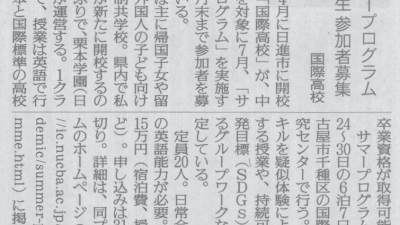 Yomiuri Shinbun(2021/5/12) NUCB International College's Summer School was featured in the ...