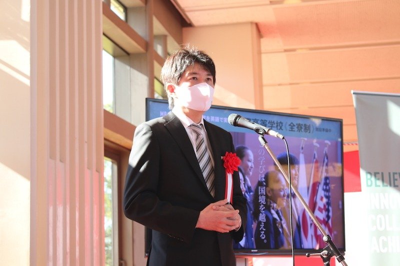Dr Hiroyuki Kurimoto, the Chancellor of NUCB, gave a welcoming speech in which he explained the vision of the new international boarding school. The Mayor of Nisshin city, and an Executive Director from the Bureau of Economic and Industry, Aichi Prefectural Government, came to express their support and extend their best wishes. They noted the significance of having a globally-minded educational institution, where young people from around the world live and study together, in the local area. The ceremony was also attended by staff of the architectural and construction firms in charge of the project, as well as the mass media.