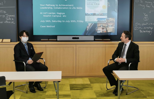 The mock class was an opportunity to experience the case method, one of the most distinctive features of NUCB. The case method is a teaching method used in most of the top business schools around the world to train students in the breadth and depth of knowledge and thinking, and problem-solving skills, by using real or hypothetical cases as teaching materials and discussing the cases from a student viewpoint. This is the first time in Japan that an MBA-style case method has been applied to most of the classes at a senior high school. This time, the students worked on a case study about the development of a travel business in Nagoya. Professor Goi Hoe Chin, who was in charge of the class, posed a variety of questions as the discussion progressed, and at the end of the session, the participants shared their conclusions and learnings from the case. It was impressive to see how the participants tried to use their knowledge of the unfamiliar case method and how actively they tried to communicate in English.