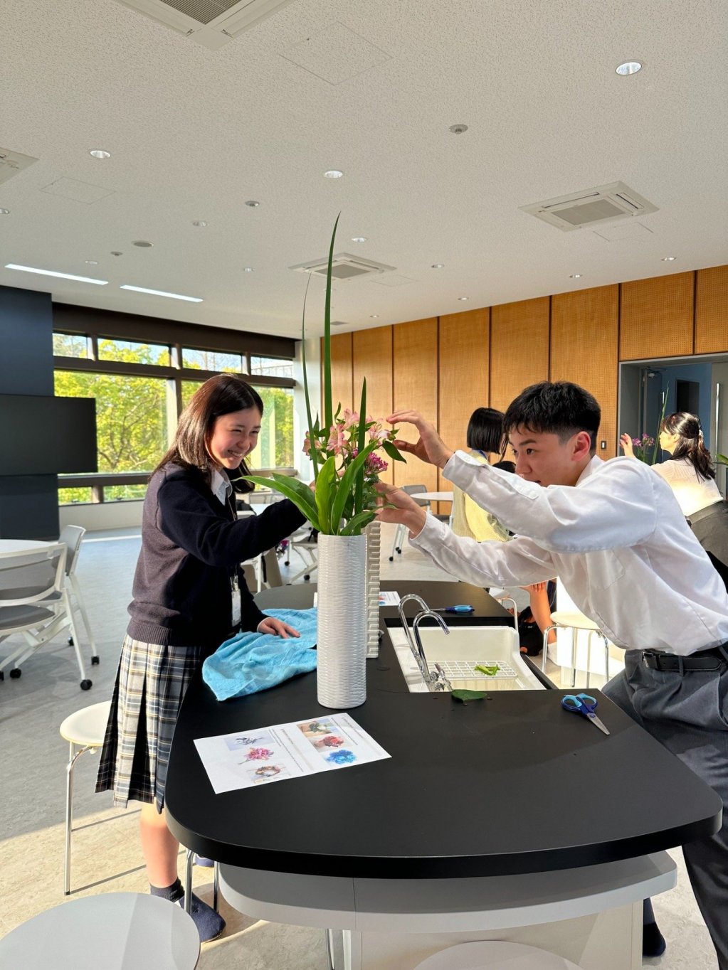 Students have expressed interest in exploring traditional Japanese activities including ikebana (flower arrangement)! Under the supervision of Naruse-sensei, they create new arrangements following different themes twice a week as part of this term’s Engage Programme.